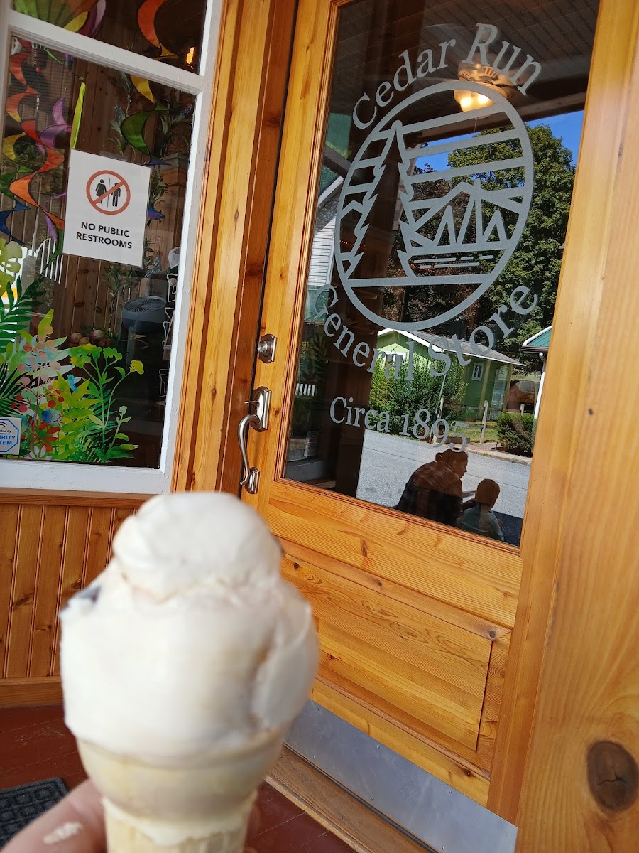 The ambience of Cedar Run General Store is equally enchanting. With its rustic charm and welcoming atmosphere, guests love to sit on the big steps outside, soaking in the slower pace of life while enjoying their ice cream. As A G mentions, it's “the perfect place to eat your ice cream and watch the world go by.” Cyclists and hikers often stop by, creating a welcoming hub for shared stories and laughter.